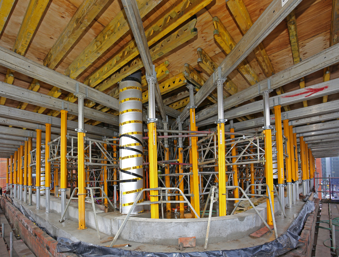 Utilisation optimisée des matériauxgrâce à une combinaison de poutres de coffrage GT 24 et VT 20K, ainsi qu'à une disposition des poutres librement sélectionnable.